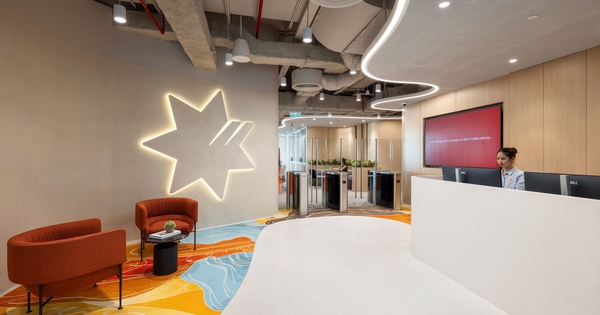 Không gian nội thất của văn phòng được điểm xuyết bằng nhiều chi tiết mang đậm nét văn hóa Việt Nam, từ các họa tiết truyền thống đến những tác phẩm nghệ thuật độc đáo. Đặc biệt, bức tranh tường gốm sứ gồm hơn 100.000 mảnh ghép thủ công tạo điểm nhấn sinh động cho khu vực tiếp khách và không gian chung, phản ánh sự kết nối hòa quyện giữa truyền thống địa phương và tinh thần đổi mới sáng tạo toàn cầu.